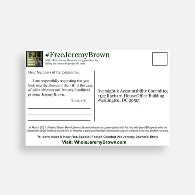 The Jeremy Brown Defense Team invites you to join us in a nationwide postcard project to call upon m...